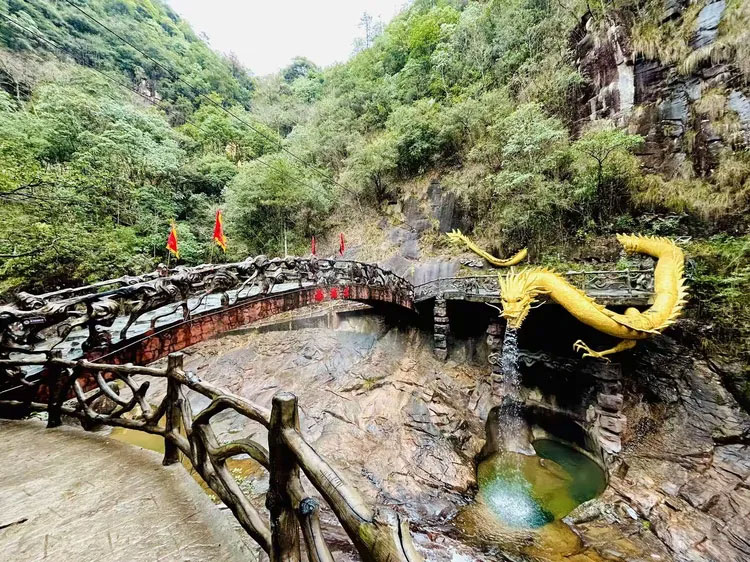 文成龙麒源位于浙江温州文成县西坑畲族镇梧溪境内的蟹坑地带,东邻百丈漈风景名胜区,南接飞云湖、岩门大峡谷景区,西接铜铃山、石洋两大森林公园,北距刘基故里,是文成县“马蹄”型旅游圈的中心位置,有着得天独厚的地理优势。龙麒源景区面积6000多亩,景区由龙麒山、金碧滩、龙麒峡、语溪谷、飞翠湖等五大部分组成,全部为亚热带阔叶林木,是文成县保存最完好的生态公益林,植被丰茂,碧水长流,峡谷幽深,是集山水旅游、休闲探险、地貌原始森林考察的好去处。