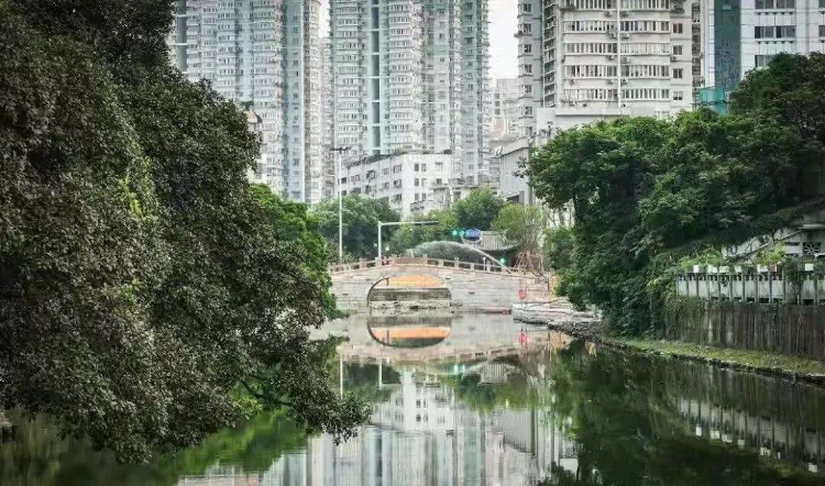 纱帽河的“河”属于纱帽河改造中的“人工造河”项目,现在已展现初步改造成果,“河景”点缀重现了历史上的纱帽河,也让这条商业街更显秀美之气。