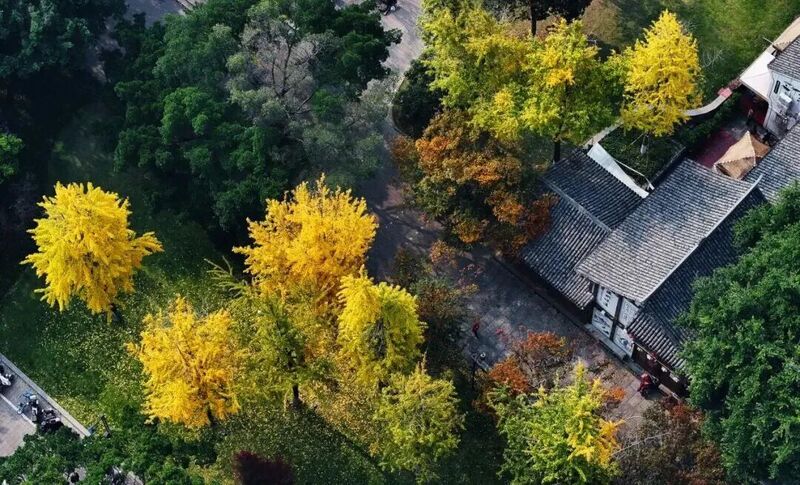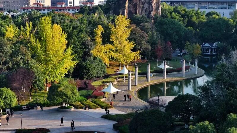 成片的银杏林渐渐镀上金辉,马鞍池、九山、绣山、白鹿洲、中山等公园次第落笔,共同绘就这幅名为“冬日浪漫”的流动长卷。