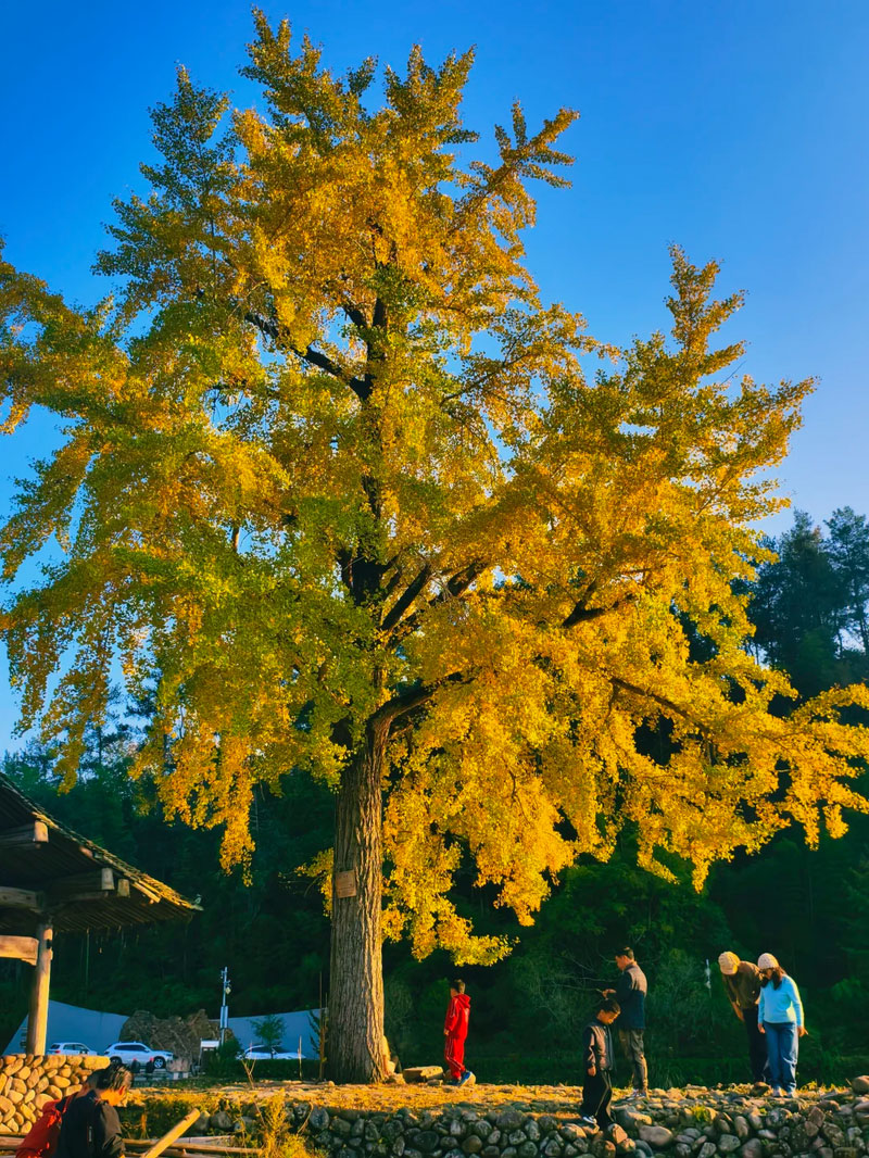 永嘉岩坦镇的屿北古村,青砖石墙与高山云海依旧,近日却被一树银杏点破了静谧。那抹突如其来的温柔金黄,在古韵底色上,惊艳了整个初冬。