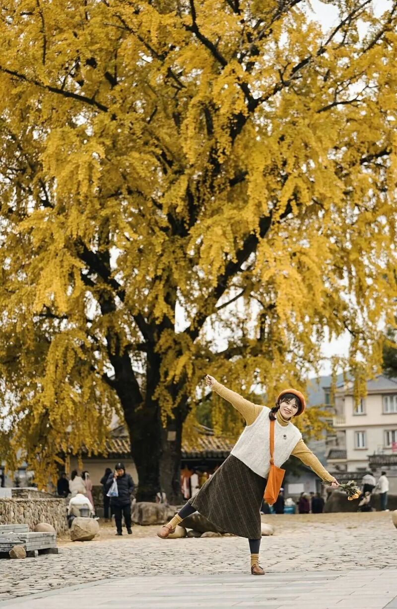 步入平阳桔坡山公园,看银杏用金枝黄叶织就一道浪漫拱门。着一袭浅衣行过,每一步都像走入画中,随手定格,皆是满屏的初冬诗意。