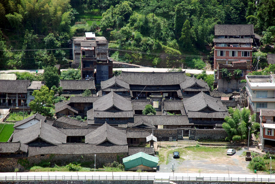 泰顺著名的古民居胡氏大院。据《胡氏家谱》记载,明朝天顺年间(1457年~1464年),胡氏始祖胡道严从庆元迁居于此,传至胡东伟一代时,家业日盛,于是开始大规模的建造住屋。胡东伟从道光十二年(1832)起至同治甲戌年(1874),历时40余年,才建成我们现在所看到的胡氏大院。