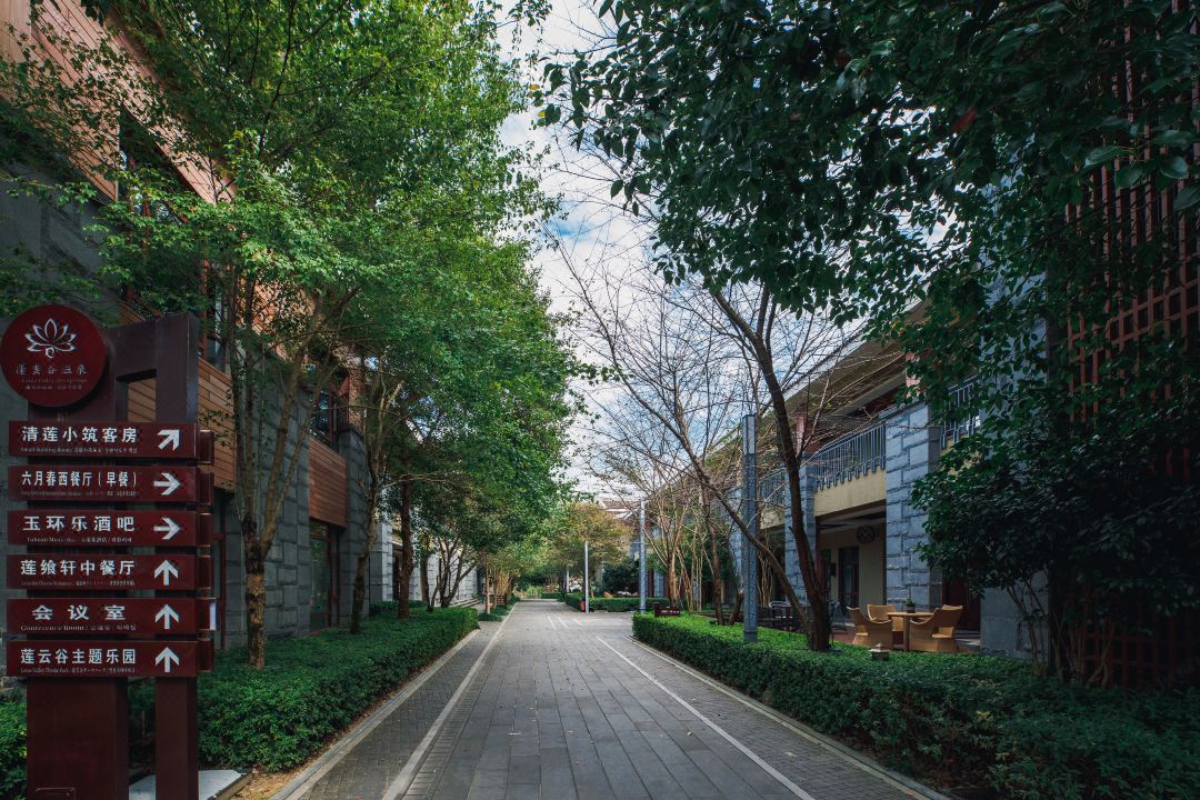 莲云谷温泉是温州目前唯一的温泉文化主题酒店。酒店依山依峡傍水而建,拥有广阔视野的峡谷景观,秉承田园自然生态、欢乐舒心、养生健体的产品设计与服务理念,结合泰顺古民居及民俗文化,巧妙地将莲、竹、陶、木等中国写意和诗意植入其中,主体建筑融合汉唐风格,区内装饰结合泰顺古民居风格的悬梁元素和畲族文化等古朴元素,室外温泉结合泰顺廊桥、碇步元素,大气与婉约并存,形成了独特的新汉唐建筑风格。莲云谷温泉是以天然氡温泉的养生休闲功能为核心,集自然山水和峡谷观光、乡村旅游度假、户外健身运动等特色综合性的养生休闲度假商务温泉酒店。