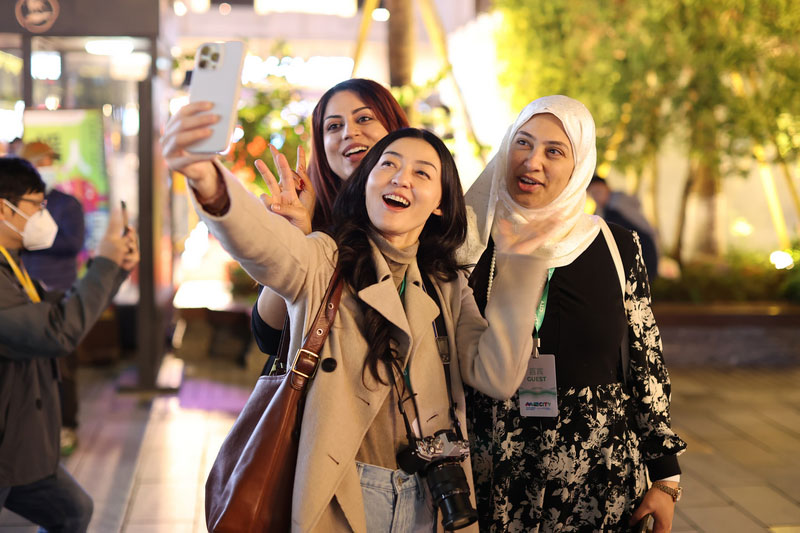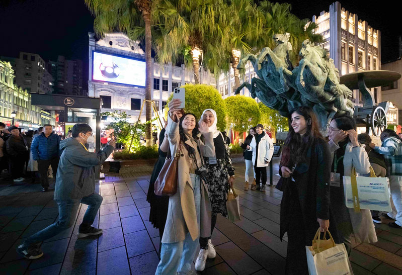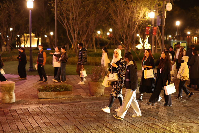 11月18日,2025海上丝绸之路城市合作发展大会暨国际旅行商大会在温启幕。当晚,海丝之路沿线部分城市市长、“洋网红”等,来到温州五马历史文化街区参观考察和谐共存的中西建筑、跨文化的时尚设计,连连点赞温州具有开放包容、融合创新、引领时尚的海丝文化。俄罗斯籍美女主播兰娜说:“我真的爱上这个地方!”