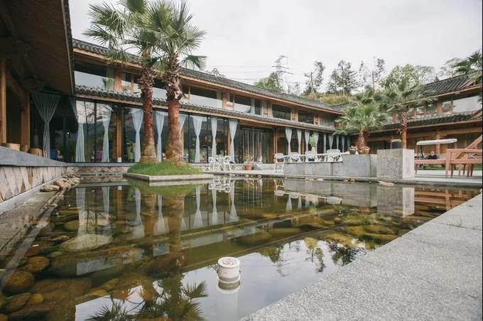 整个民宿保留了老建筑的滋味,又融入了当代时尚的元素,虽不奢华,却很讲究,有一种复古又略带俏皮感的畲乡风情。使用纯木搭建的建筑,与四周群山融为一体,天然而自然,一切都更贴近生命的本源。一脚踏入月蓝舍便有一种眼前一亮的感觉,初入庭院,只见院内有潺潺的小溪、高高的香樟树 、沙滩、躺椅,仿佛从山林跨越到了东南亚热带雨林。