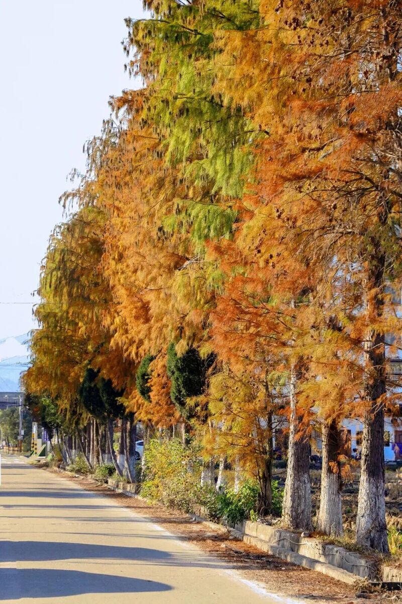 藏在昆阳镇上林垟村里的“美拉德”美景,又到年度最佳观赏期!避开喧嚣,这里的红杉林正用满屏暖色调,为你一键拉满冬日氛围。