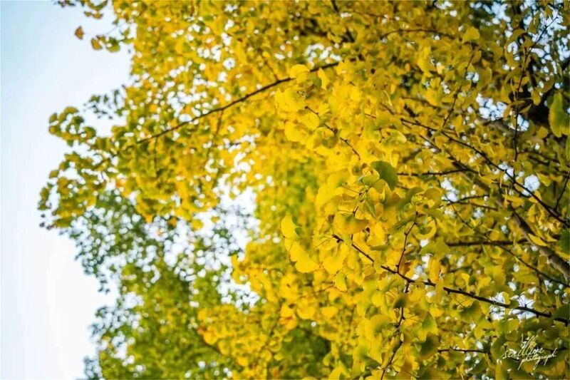 似是用油画棒描绘,这时节,温州大学城学子广场的银杏就已温柔得不像话。黄和绿是自然的渐变,还没黄全的银杏,似乎也别有风味。