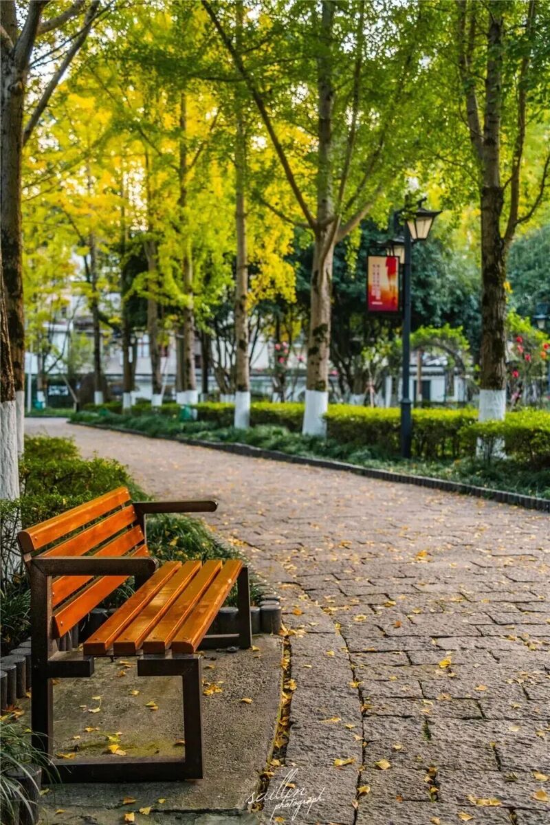 东塔公园的银杏,为月季园悄悄镶上金边。闲坐于棕红长椅,任落叶轻旋肩头,瞬间便签收了这一整份初冬的静谧与浪漫。