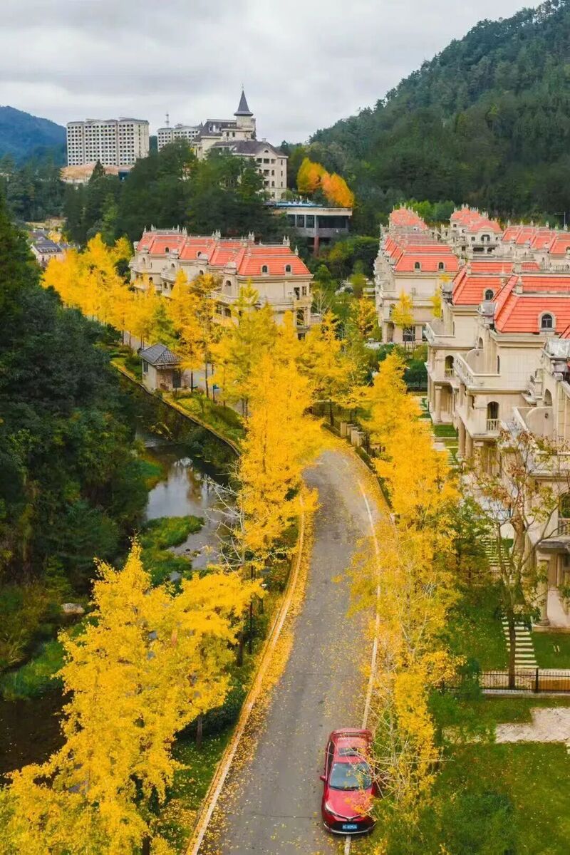 天鹅堡小镇内,金黄的银杏与典雅的欧式建筑相映生辉。驻足其间,恍若置身异国的油画世界,每一眼都令人沉醉。