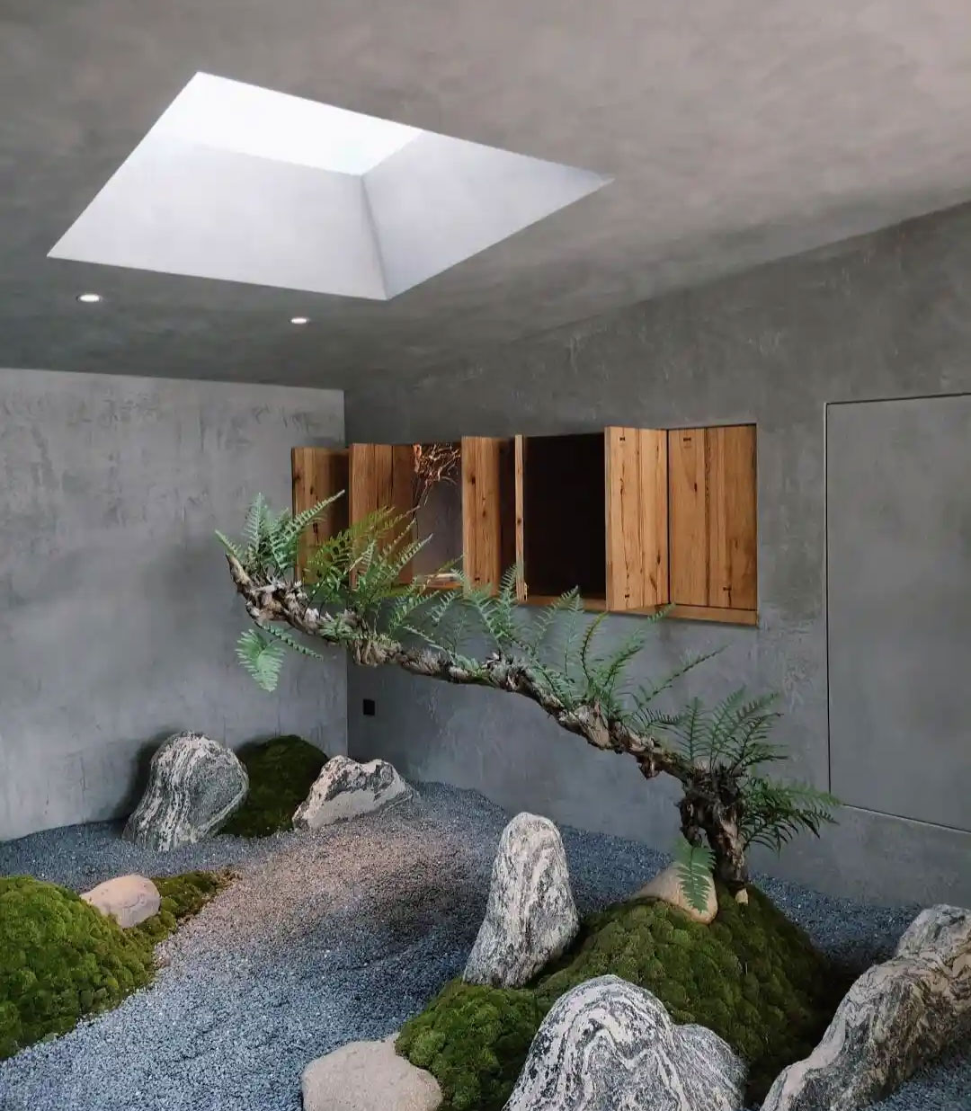 进门后,左手边是一条长走廊,该区是包厢,有塌塌米,有雅座;有大落地窗的,有一些开小天窗的;巧妙引入光源的方式,营造了一种特别光感氛围,整体的空间都别具风格,极其舒适。
